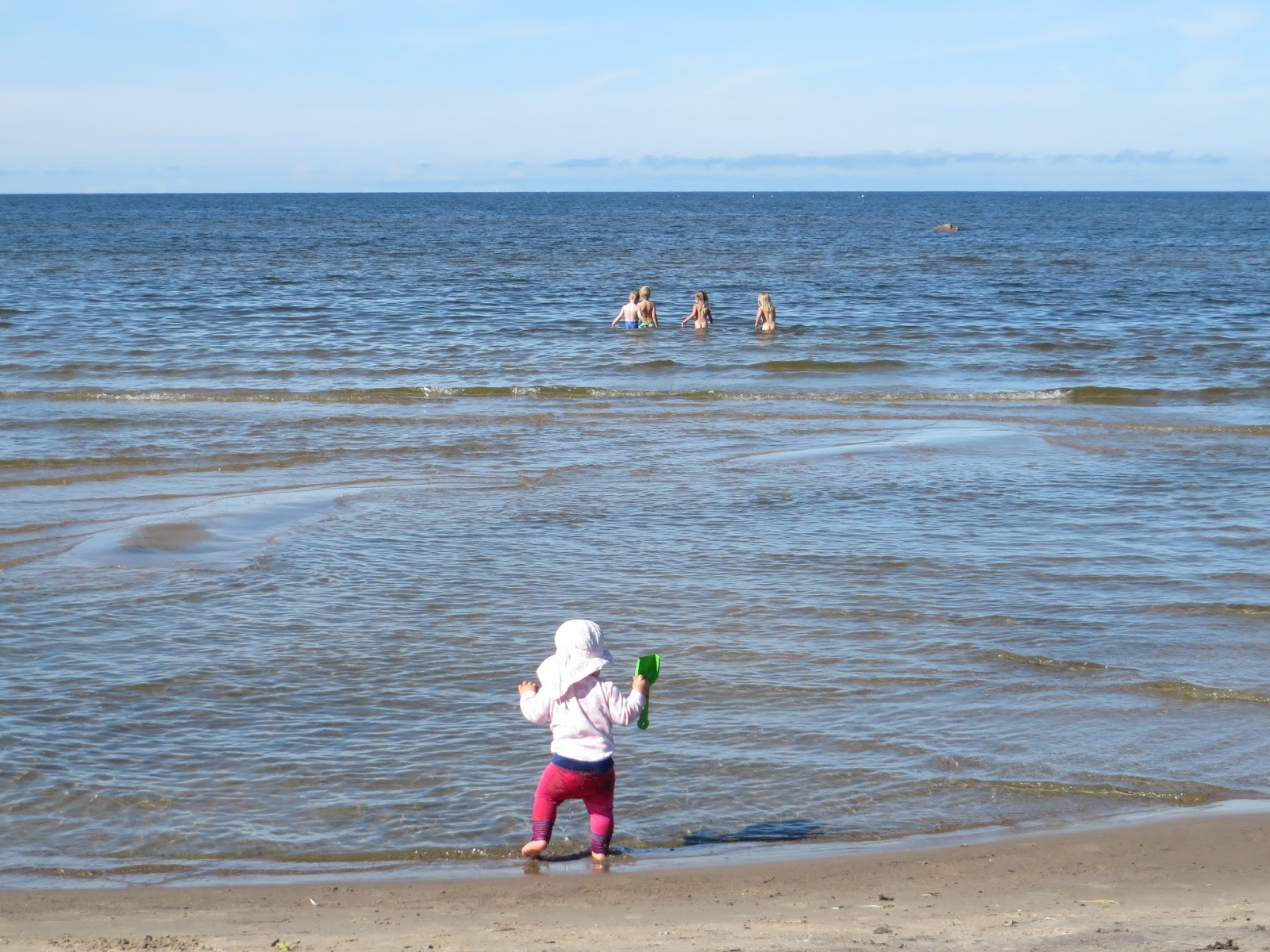 Det gick förvånansvärt bra. Barnen var nöjda (för det mesta). Ingen drunknade, en tog dock några kullerbyttor i vattnet, med följden att vattnet sedan respekterades. Maten smakade alltid bra, åtminstone för nån av barnen. Inga hysteriska ungar när det var dags att sova, alla låg och myste, de tre äldsta rätt fnittrigt. Mommo fick känna sig som trollmor där hon låg på tvären i sängen med tre nytvättade trollungar.
